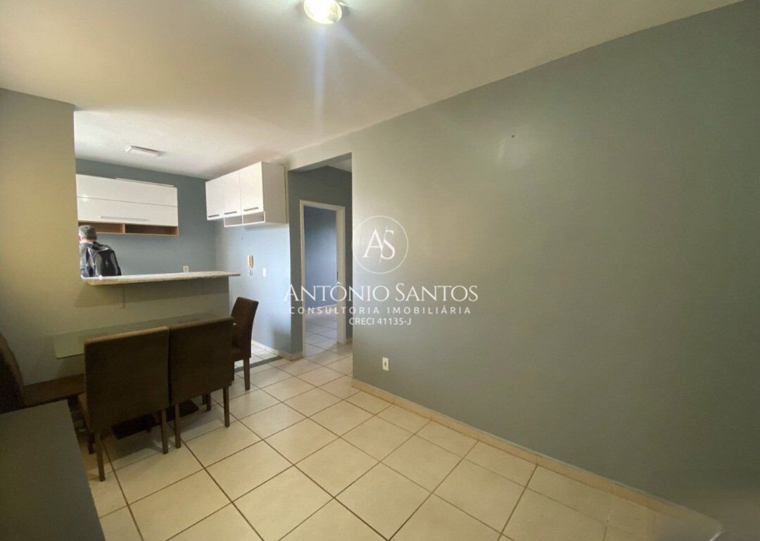 - Apartamento sendo 2 dormitórios , 1 vaga de garagem coberta, cozinha com armários e fogão , sala com rack e mesa com 4 cadeiras tampo de vidro , quarto de casal com guarda roupas.