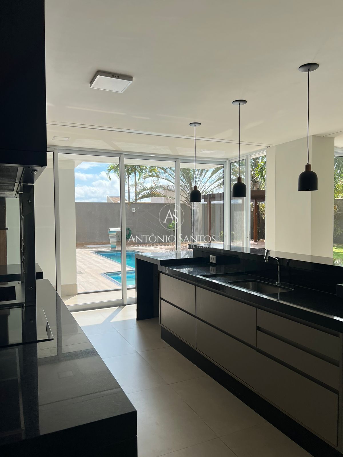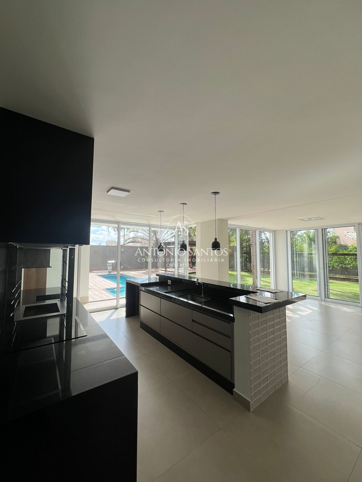 Lavabo , Área gourmet toda voltada para jardim e piscina com ambiente fechado podendo climatizar , Cozinha com despensa